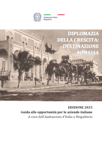 We are publishing the “Guide to Opportunities for Italian Companies”, a tool prepared by the Italian Embassy in Mogadishu, which allows Italian companies to explore investment and growth prospects in Somalia, a country where Italy enjoys a long-standing presence and a heritage of bilateral relations that go back over a century of shared history.